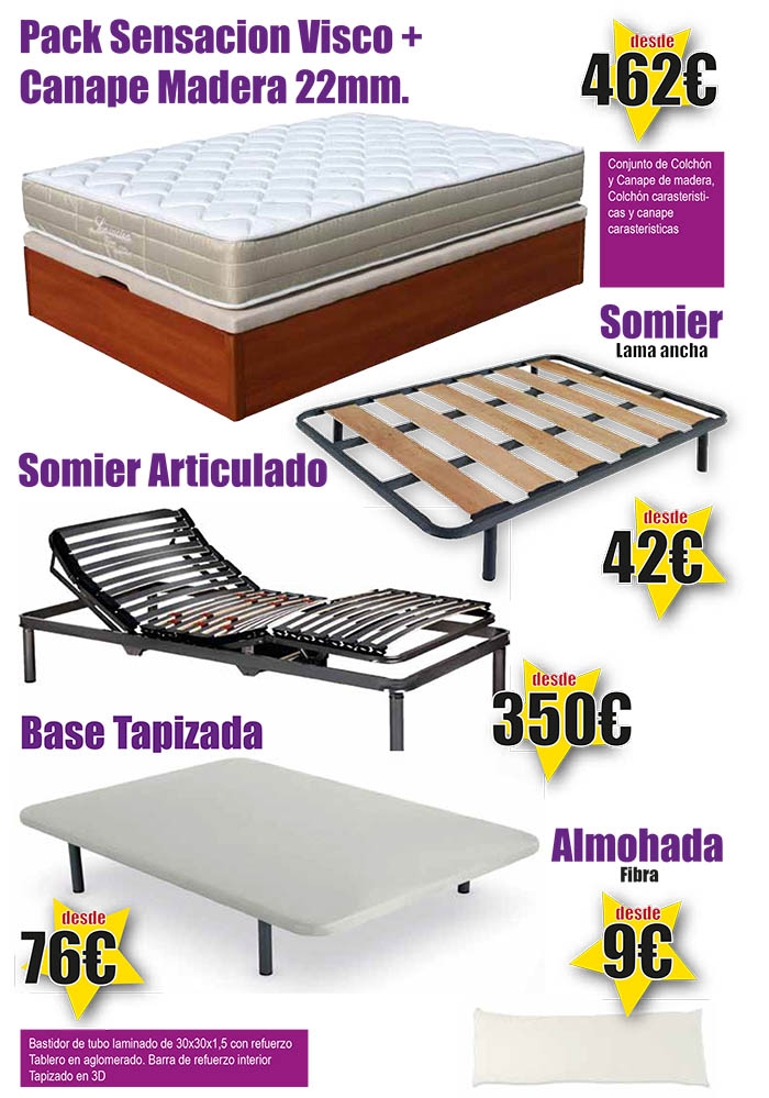 Echa un vistazo a nuestra promoción en descanso y encuentra tu colchón; elige entre somier, canapé o base tapizada; prueba el nuevo somier articulado o llévate una almohada de fibra por 9 euros.